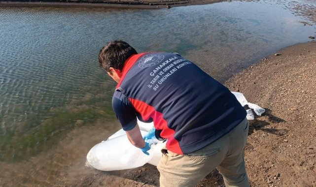 Tarım ve Orman Bakanlığınca yürütülen "Su Kaynaklarının Balıklandırılması Projesi" kapsamında Çanakkale'de baraj ve göletlere 2 milyon aynalı sazan yavrusu bırakıldı.
