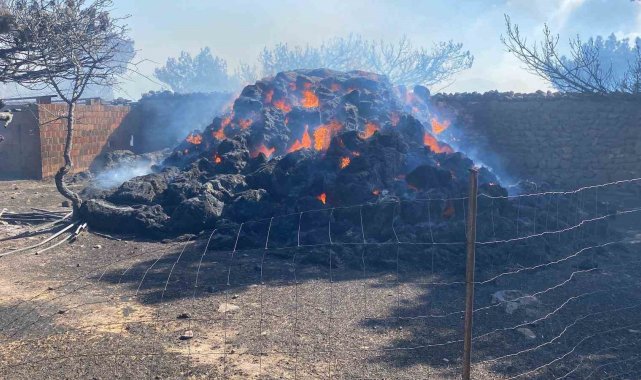Çanakkale'nin Ayvacık ilçesinde çıkan orman yangınında alevler rüzgarın etkisiyle büyüyerek yerleşim yerlerine sıçradı. Yangında köy mezarlığı hayvan damları, tarım aletleri, samanlar zarar gördü.