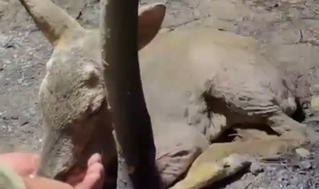Çanakkale'de çıkan orman yangınında yaralanan yavru ceylana ekipler su yetiştirildi