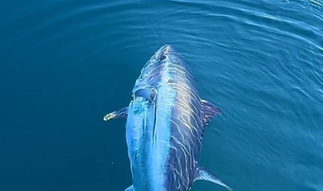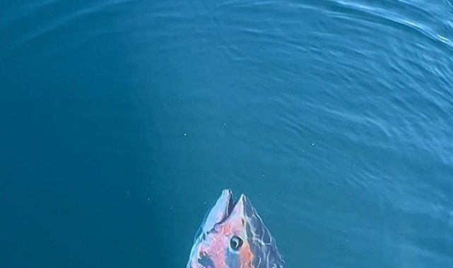 Çanakkale Gökçeada açıklarında ava çıkan balıkçıların dev orkinos balığını beslediği anlar sosyal medyada ilgi gördü.