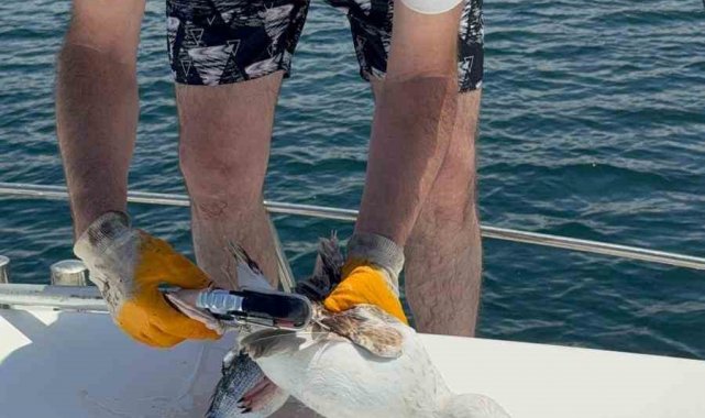 Çanakkale'de denizde oltaya takılan martı kurtarıldı