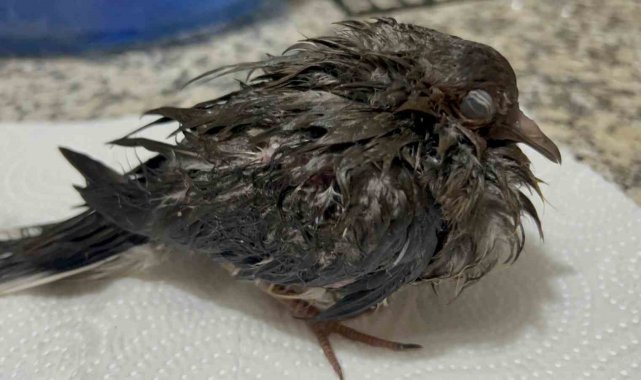 Dolu yağışından etkilenen ve bitkin düşen bir kuş cep telefonu kamerasına yansıdı. Duyarlı bir vatandaş ise kuşu, dinlenmesi için evine aldı.