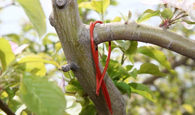 Çanakkale İl Tarım ve Orman Müdürlüğü, "Biyolojik-Biyoteknik Mücadelenin Yaygınlaştırılması" projesi kapsamında elma iç kurduna karşı feromon çubukları uygulamasını genişletiyor. Son uygulama, Aşağıokçular'da elma bahçesinde gerçekleştirildi.