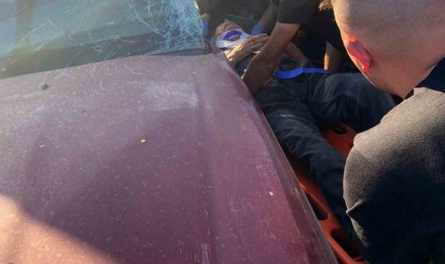 Çanakkale'nin Bayramiç ilçesinde minibüs ile hafif ticari aracın çarpıştığı kazada hafif ticari aracın sürücüsü H.B. yaralandı.