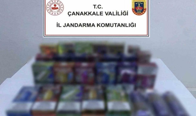 Çanakkale'de jandarma ekiplerince düzenlenen operasyonda 27 adet elektronik sigara ve 220 kilogram sarmalık kıyılmış tütün ele geçirildi.