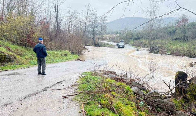 Çanakkale'de köy yolu sağanak yağış sonrası kapandı, bir araç suya kapıldı
