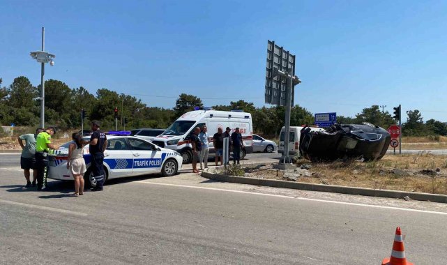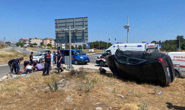 Çanakkale'nin Ayvacık ilçesinde bir otomobil seyir halindeki motosiklete çarparak takla attı. Kazada motosiklet sürücüsü ağır yaralanırken ile otomobil sürücüsü hafif yaralandı.