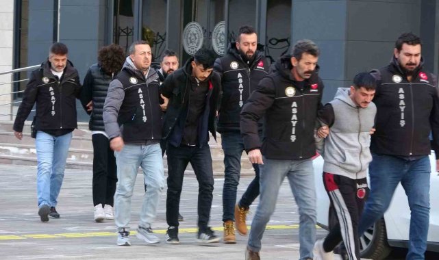 Çanakkale İl Emniyet Müdürlüğüne getirilen şüpheliler K.Ü., M.C.U. ve İ.K. emniyetteki işlemlerinin ardından adliyeye sevk edildi.