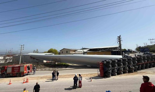 Çanakkale'de rüzgar gülü kanadı taşıyan tır devrildi