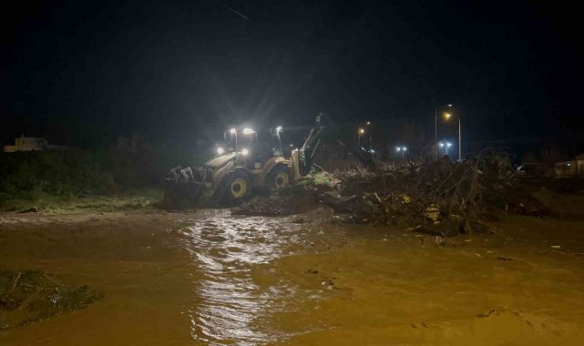 Çanakkale'de sağanak yağış nedeniyle Kepez Çayı taştı. Dardanos ve Güzelyalı köylerine giden sahil yolu trafiğe kapatıldı.