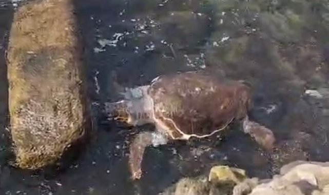 Çanakkale'nin Lapseki ilçesi sahilinde caretta caretta türü deniz kaplumbağası, ölü halde sahile vurmuş şekilde bulundu.