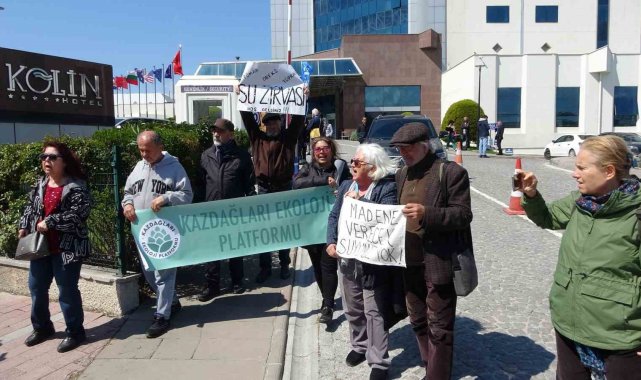 Açıklamanın ardından bir grup çevreci, 'Madene Verecek Suyumuz Yok', 'Su Altından Değerlidir' sloganları attı. Salonda devam eden yapılan eylem sırasında bir grup çevreci de otel girişinde basın açıklaması yaparak, su zirvesine teki gösterdi. Kazdağları Ekoloji Platformu tarafından yapılan açıklamada ise, "Su Zirvesi'nde, Çanakkale'nin su varlıklarının korunması için alınması gereken önlemler ve su varlıklarımıza yönelik metalik madenciliği gibi tehditlerin ortaya konulmasını beklerken, ne yazık ki, TÜMAD, TÜPRAG gibi altın şirketleri Zirve'ye sponsor yapılmıştır. Programda şirketlere plaket takdim edileceği de yazılıdır. Bu durum oldukça düşündürücü ve endişe vericidir. Suyumuzu korumak, suyumuzla ilgili yol haritası çıkarmak sularımıza el koyan, kirleten maden şirketlerine mi kalmıştır. Bunca kamu kurumu, bu Zirve'yi maden şirketlerinin kirli parası olmadan, kendi kurumsal imkanlarla gerçekleştiremez miydi. Nurol Holding'e ait olan TÜMAD, Lapseki'de, Lapseki Ovası'na içme ve sulama suyu sağlayan Bayramdere Barajı'nın hemen yakınında, ve ayrıca, İvrindi'de, Düdüklü Suyu'nun kaynağında süyanürlü altın madenciliği faaliyeti yürütmektedir. TÜMAD, Lapseki'nin yer altı kuyularından su çekmektedir. Uluslararası Eldoradogold şirketinin yüzde yüz iştiraki olan TÜPRAG, İzmir'in içme suyu kaynağı olan Tahtalı Barajı'nın hemen bitişiğinde Efemçukuru Altın Madeni'ni işletmektedir. Ayrıca, Uşak Eşme'de Kışladağ Altın Madeni Projesi ile koca bir dağı yok etmiş, 2006'larda binlerce kişinin zehirlenmesine yol açmıştır. Proje'nin ÇED Olumlu Kararı iç hukukun tüketilmesinden sonra başvurulan Avrupa İnsan Hakları Mahkemesi tarafından yakın bir zamanda iptal edilmiş, yargılama yeniden başlamıştır. OREKS, Yenice'nin Kalkım ilçesi yakınlarında ve ayrıca Armutçuk'da metalik madencilik yapmaktadır. Madende birkaç kez göçükler yaşanmış, işçiler yaşamını kaybetmiştir. Çalışma şartları nedeniyle, greve giden işçilere baskı uygulanmış ve hakları verilmemiştir. Şirketin proje alanında Gönen Barajı'nı besleyen Han Deresi bulunmaktadır. Zirveyi düzenleyen tüm kurumlara buradan sesleniyoruz; Şirketlerin değil halkın ve doğanın yararını gözetin. Ekolojik yıkımların sorumlusu madenci şirketleri yeşil aklamayın. Su varlıklarımızı şirketlere peşkeş çekmeyin. Suyun kullanım önceliği madencilerin değil, halkın ve doğadaki diğer canlılarındır" denildi.