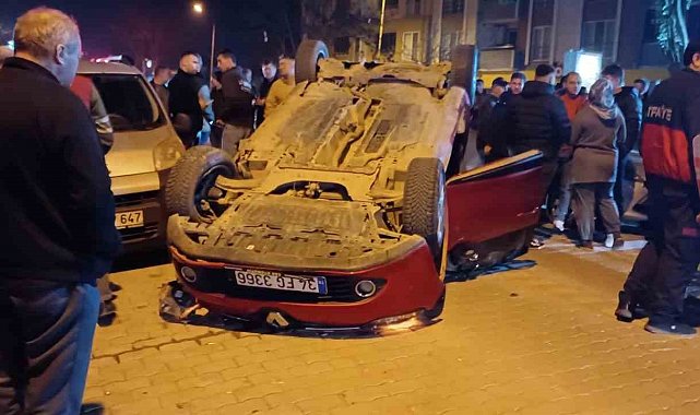Çanakkale'nin Çan ilçesinde park halindeki araca çarparak takla atan otomobilin sürücüsü yaralandı.