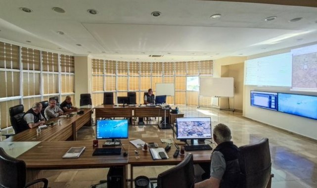 Çanakkale Valisi Ömer Toraman, yangını Orman Bölge Müdürü Enver Demirci ile Dardanos Yangın Harekat Merkezi'nden takip etti.