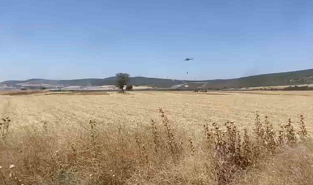 Çanakkale'nin Biga ilçesinde tarım arazisinde çıkan yangın ekiplerin karadan ve havadan müdahalesiyle kontrol altına alındı.