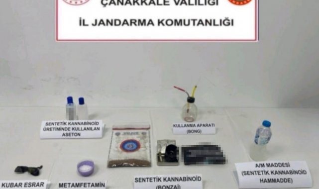 Çanakkale Cumhuriyet Başsavcılığı koordinesinde, İl Jandarma Komutanlığı ekiplerince uyuşturucu ve uyarıcı madde ile mücadele çerçevesinde kent genelinde 25 Kasım-2 Aralık tarihlerinde narkotik köpeğinin de katılımıyla 6 operasyon gerçekleştirildi. Yapılan aramalarda; 90 gram sentetik kannabinoid, 175 mililitre A/M maddesi sentetik kannabinoid ham madde, 45 gram metamfetamin, 40 adet sentetik ecza, 6 gram kubar esrar, hassas terazi, 300 gram sentetik kannabinoid yapımında kullanılan tütün, 780 mililitre sentetik kannabinoid yapımında kullanılan aseton, 23 adet uyuşturucu kullanma aparatı ele geçirildi.