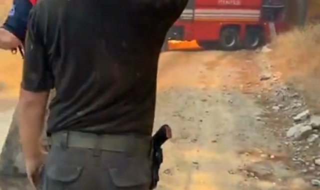 Yangına müdahale eden Çanakkale Belediyesi'ne bağlı itfaiye ekibi rüzgarın ters esmesi sebebiyle alevlerin arasında kaldı. Alevler itfaiye aracının üzerine gelirken dar alanda manevra yapamayan aracı terk eden ekipler koşarak bölgeden uzaklaştı. O anlar cep telefonu kamerasına saniye saniye yansırken, itfaiye aracı ise küle döndü.
