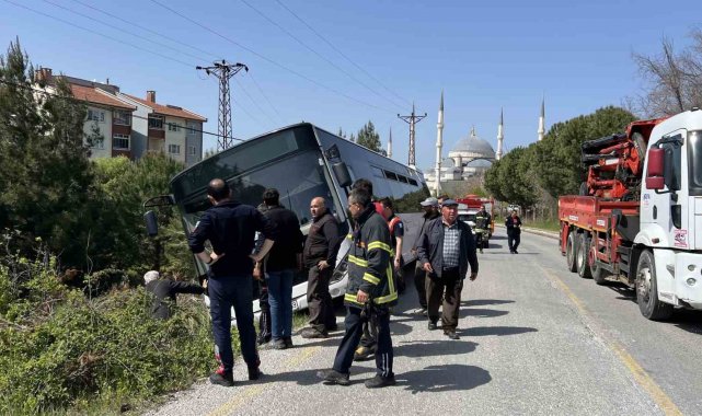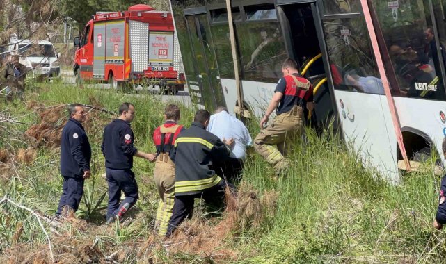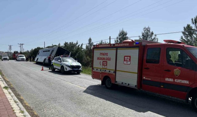 Çanakkale'de özel halk otobüsü yoldan çıktı. Şoför mahsur kaldı.