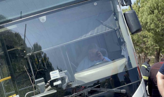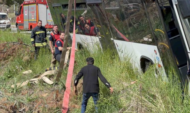 Çanakkale'de yoldan çıkan otobüste şoför mahsur kaldı