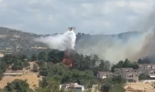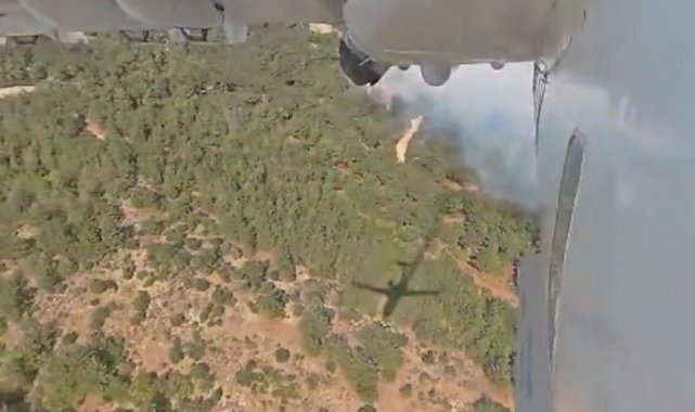 Çanakkale'deki orman yangınına müdahale havadan görüntülendi