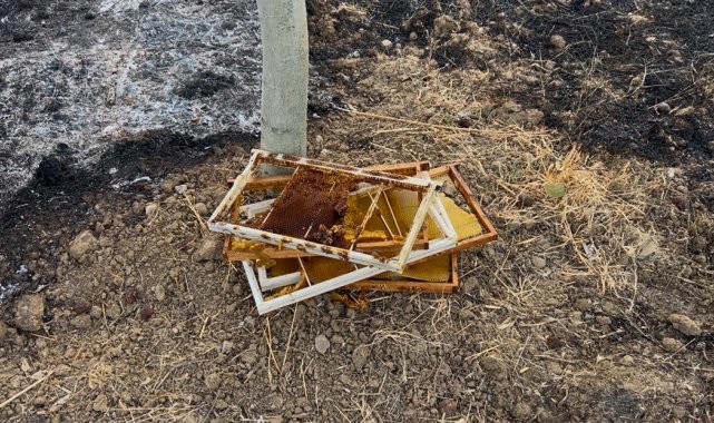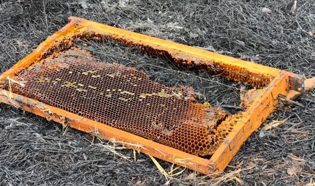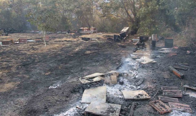 Çanakkale'deki orman yangınında arı kovanları alevlere teslim oldu