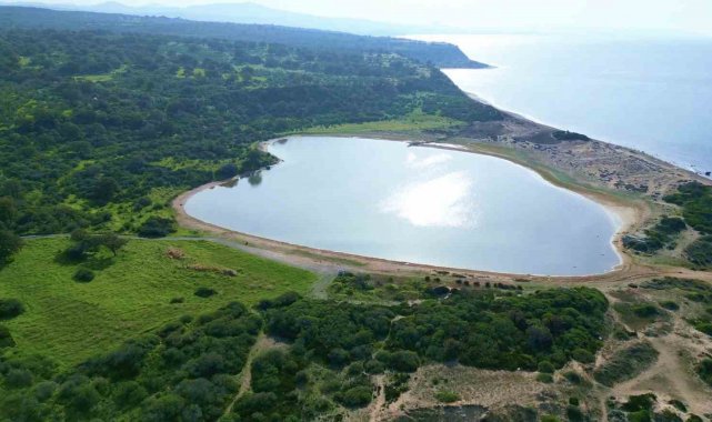 Çanakkale'nin Ezine ilçesinde bulunan 'kalpli (pembe) gölün güvenliği 7 gün 24 saat jandarma ekiplerince sağlanıyor.