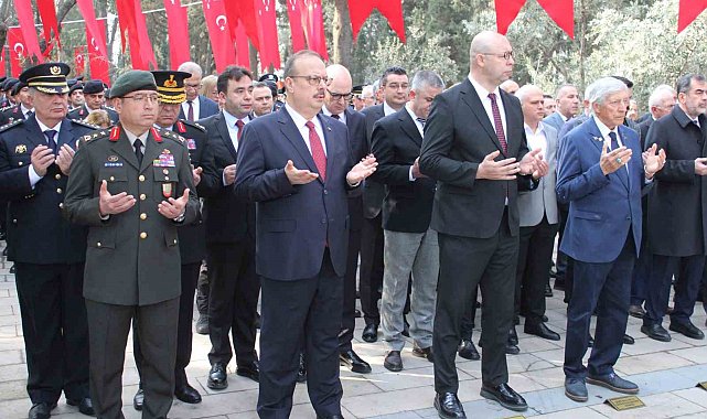 Konuşmaların ardından şehitler için dua edilirken Aydın Valisi Yakup Canbolat beraberindeki heyet ile birlikte şehitliklere karanfil bıraktı.