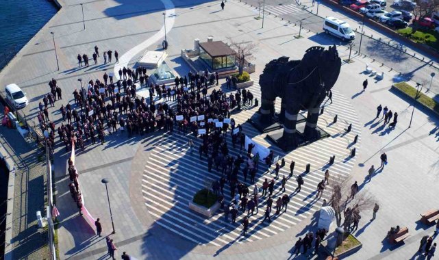 Çanakkale Kordonboyunda Golf Çay Bahçesi önünden başlayan yürüyüş Truva Atı önünde son buldu.