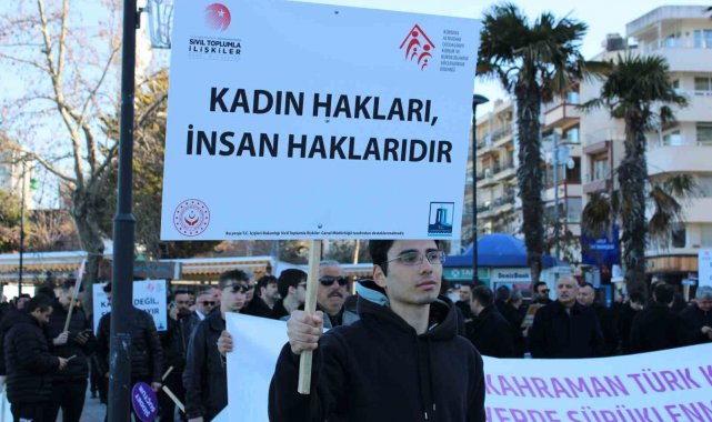 Çanakkale Valisi Ömer Toraman, kamu kurum ve kuruluşlarında çalışan erkek daire müdürleri ve personelle siyah giyinerek, 8 Mart Dünya Kadınlar Günü dolayısıyla kadına şiddete dikkat çekmek için yürüdü.