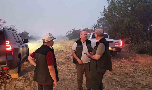 Çanakkale Valisi Ömer Toraman, yangından etkilenen Pazarlı köyünde incelemelerde bulundu.