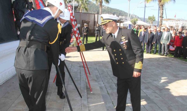 Törende Fethiye Kaymakamı İsmail Hakkı Ertaş, Belediye Başkan Vekili Bülent Uysal, Garnizon Komutanı Dz. Alb. Dalaman Dz. Hv. Üs Komutanı Okan Mumcu, Türkiye Muharip Gaziler ve Şehit Aileleri Yardımlaşma ve Dayanışma Derneği Başkanı Ali Cantürk Şehitler Anıtı'na çelenk sundular. Ardından Türkiye Cumhuriyeti'mizin kurucusu Ulu önder Mustafa Kemal Atatürk ve tüm şehitlerimiz için 1 dakikalık saygı duruşunda bulunulup, İstiklal Marşı'mız söylendi.