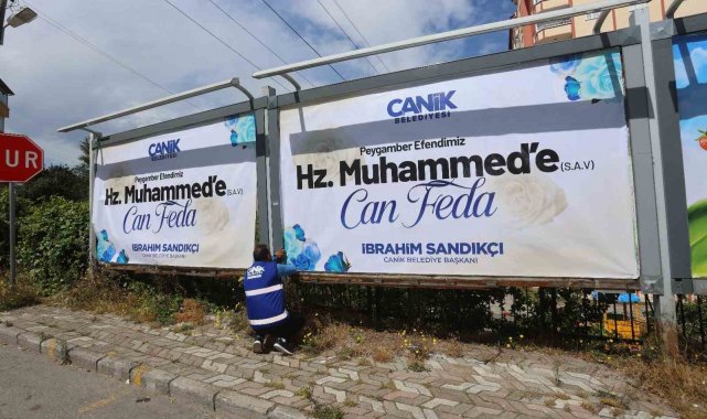 Samsun'un Canik Belediyesi, Peygamber Efendimiz Hz. Muhammed'e yönelik hakaret içeren karikatürleri kınayarak ilçenin çeşitli noktalarına, "Hz. Muhammed'e Can Feda" yazılı afişler astı.