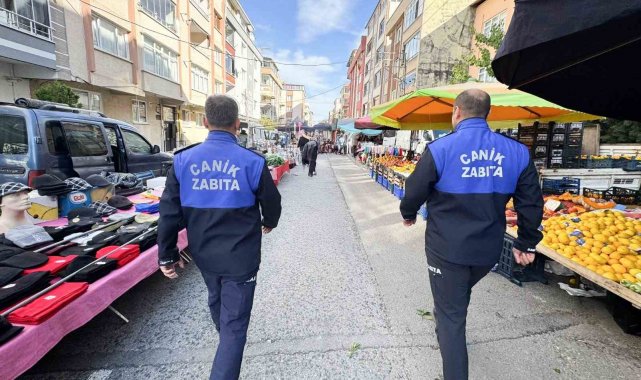 İlçede kurulan semt pazarlarında uygunsuz satışa göz açtırmayan Canik Belediyesi Zabıta Müdürlüğü ekipleri, vatandaşların güvenli bir şekilde pazar alışverişlerini gerçekleştirebilmeleri adına denetimlerine yoğun bir şekilde devam ediyor. Semt pazarlarında kurulan tezgâhları dikkatle denetleyen Canik Zabıtası, ürün satışlarının uygunluğuna yönelik esnaflara uyarılarda ve hatırlatmalarda bulunuyor. Canik Belediyesi Mobil Zabıta Çözüm Merkezi'yle de semt pazarlarında vatandaşların taleplerini ve önerilerini dinleyen zabıta ekipleri, ayrıca vatandaşların dilekçe işlemlerini gerçekleştiriyor.