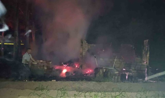 Çankırı'da kavak ağaçları ve baraka alevlere teslim oldu