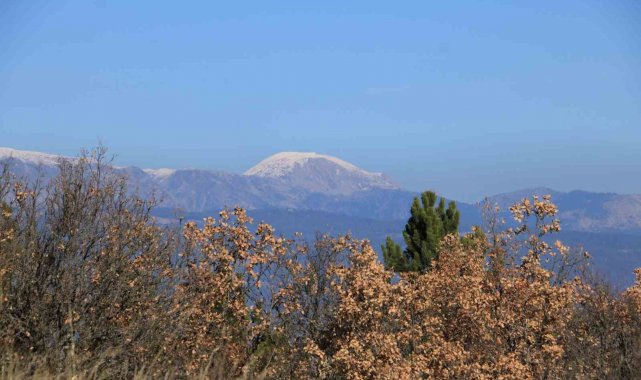 Çankırı'da sonbahar ve kış mevsiminin aynı karede buluşmasıyla ortaya çıkan manzara mest ediyor.