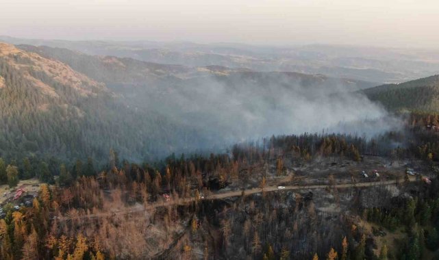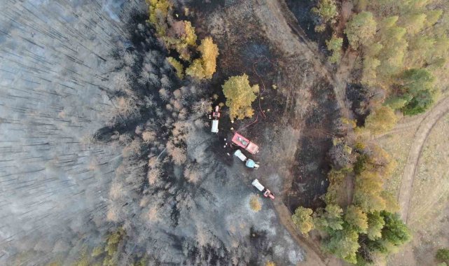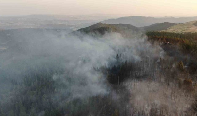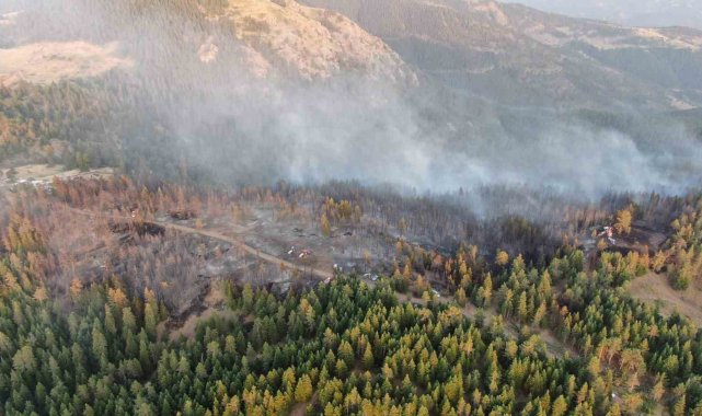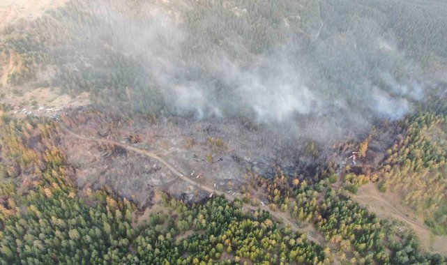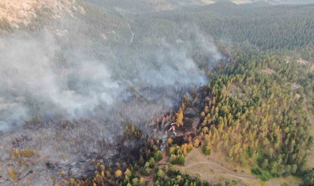 Öte yandan, yanan ormanlık alan havadan görüntülendi.