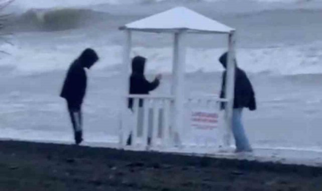 Samsun'un Atakum ilçesinde sahildeki cankurtaran kulübesini denize atmaya çalışan 3 çocuk, vatandaşların ihbarı üzerine sahile gelen polis ekiplerince engellendi.