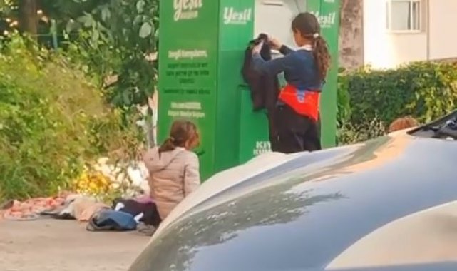 Canlarını hiçe sayarak giysi kumbarasından kıyafet çaldılar