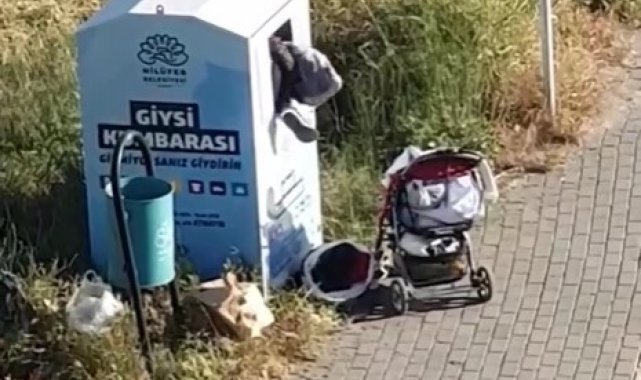 Olay, merkez Nilüfer ilçesi 23 Nisan Mahallesi'nde meydana geldi. Kentin farklı noktalarına, vatandaşların kullanmadıkları giysileri toplamak için kurulan atık giysi dolaplarına dadanan hırsızlar, canlarını hiçe sayarak dolapların içine girdi. Dolap içindeki hırsız, beğendiği eşyaları dışarıda bekleyen arkadaşına verirken, arkadaşı ise dışarıda gözcülük yaptı. Hırsızların o anları saniye saniye amatör kamera ile kaydedildi.