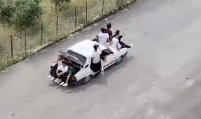 Merkez Yüreğir ilçesi Özgür Mahallesi'nin ara sokaklarında çekilen görüntülerde bir otomobilin bagajında ve kaputunda çok sayıda çocuğun yolculuk yapması dikkat çekti. Tıka basa dolu otomobilin içindeki çocuklardan bazıları da açık kapılardan sarktı.