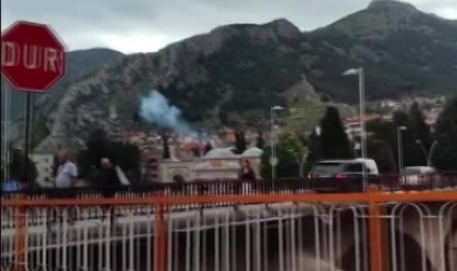 Amasya'da cep telefonuyla canlı yayında oyun oynayan gencin önünde bulunduğu binanın üzerine yıldırım düştü. Patlama sesi ve görüntüler kameraya yansıdı.