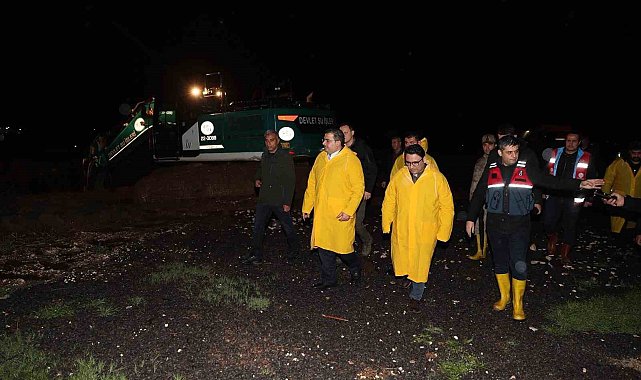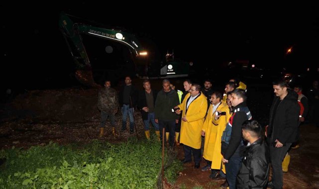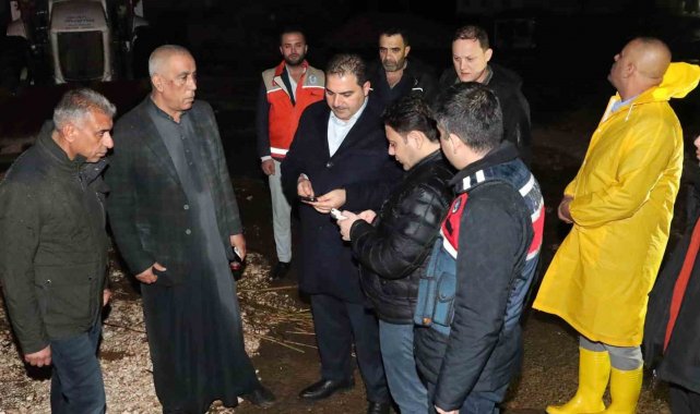 Canpolat ve Kaymakam Şahin'den gece sağanak mesaisi
