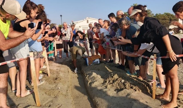 Kuşadası'ndaki bir yuvadan ise, kuluçka süresi bitmesine ve yuvanın çökmesine rağmen yavruların çıkışı görülmeyince kontrol açılışı gerçekleştirildi. Açılan yuvada tüm yavruların yumurtadan çıktığı ve kum yüzeyine yakın beklediği görüldü. EKODOSD Bilim danışmanı Prof. Dr. Oğuz Türkozan'la da görüşülerek yavru kaplumbağaların sıcakta yanıp ölmemeleri içi, yavruların hepsi yuvadan alınarak, karanlık odada bekletildi. Akşama doğru vatandaşlarla birlikte yuva yerinden denize ulaşmaları sağlandı. Yuva gönüllülerine ve işletmelere Ekosistemi Koruma ve Doğa Sevenler Derneği'nin (EKODOSD) teşekkür belgesi takdim edildi. Bölge sakinleri yavruların denizle buluşmasına tanıklık etti.