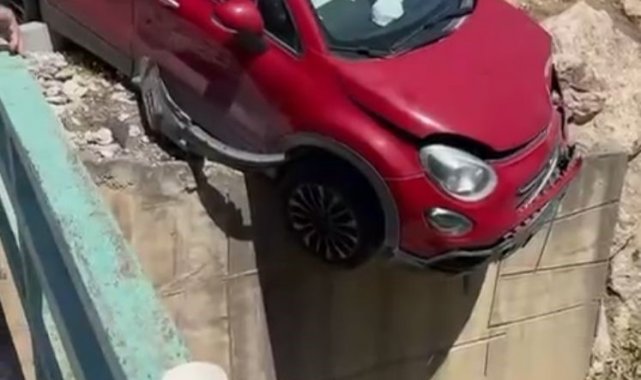 Mersin'in Tarsus ilçesinde çarpışan araçlardan biri kanal düşmekten askıda kalarak kurtuldu. Ucuz atlatılan kazada 3 kişi yaralandı.