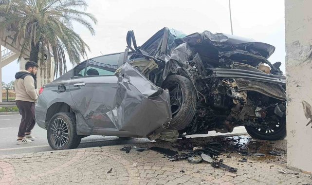 Kaza, Alanya-Antalya D-400 kara yolunda meydana geldi. Edinilen bilgiye göre, Alanya'dan Antalya istikametine seyreden Selim U.'nun kullandığı 07 ASC 040 plakalı otomobil, Sorgun-Otogar Köprülü Kavşak çıkışında yan yoldan gelen Levent Y.'nin kullandığı 07 LDD 50 plakalı otomobille çarpıştı. Çarpmanın etkisiyle savrulan 07 ASC 040 plakalı otomobil, yaya üst geçidi altındaki beton kolonlara çarparak durabildi. Kaza ihbarı üzerine olay yerine Antalya Büyükşehir Belediyesi İtfaiyesi Manavgat Birimine bağlı kurtarma, sağlık ve Manavgat Emniyet Müdürlüğü Trafik Denetleme Büro Amirliği ekipleri sevk edildi. Beton kolona çarparak hurdaya dönen araç içerisinde sıkışan sürücü Selim U., itfaiye ve sağlık ekipleri tarafından araçtan çıkarıldı. Yaralı sürücü, sağlık ekiplerinin olay yerindeki ilk müdahalesinin ardından ambulansla hastaneye kaldırıldı. Yaralı sürücünün hayati tehlikesinin bulunduğu öğrenildi.