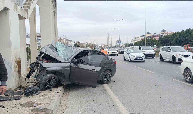 Çarpışan iki araçtan biri üst geçidin ayaklarına çarptı: 1 ağır yaralı