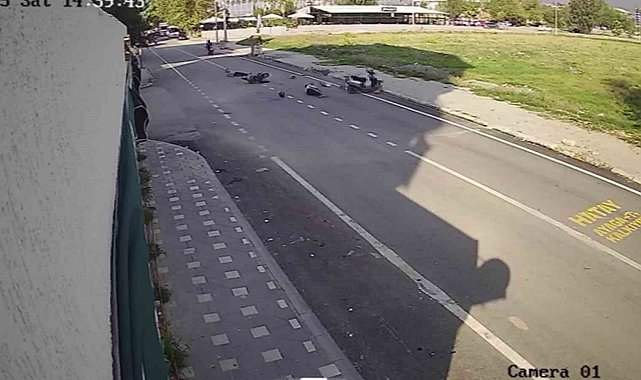 Çarpışan motosikletlerin sürücüleri yere savruldu: O anlar kamerada