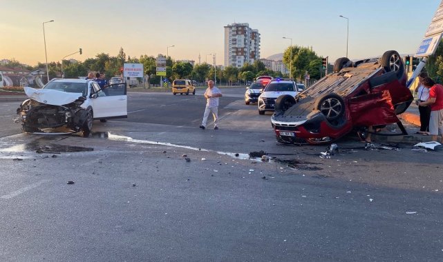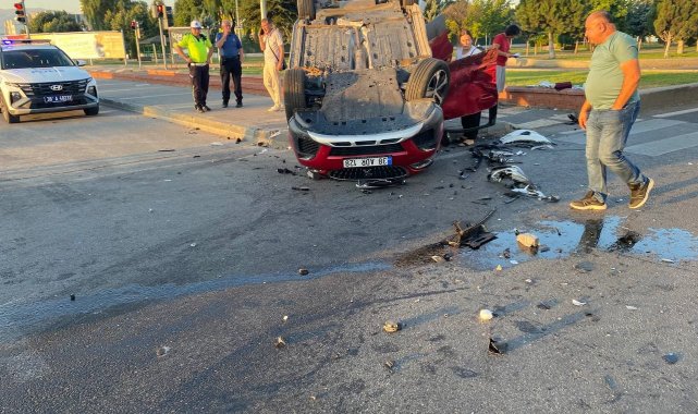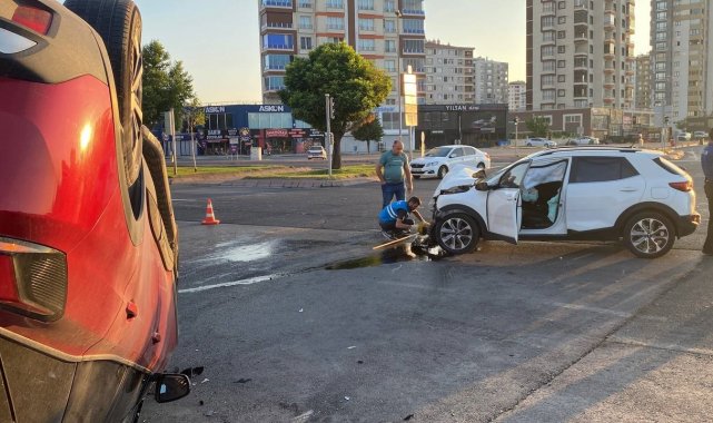 Çarpışan otomobillerden biri takla attı: 2 yaralı