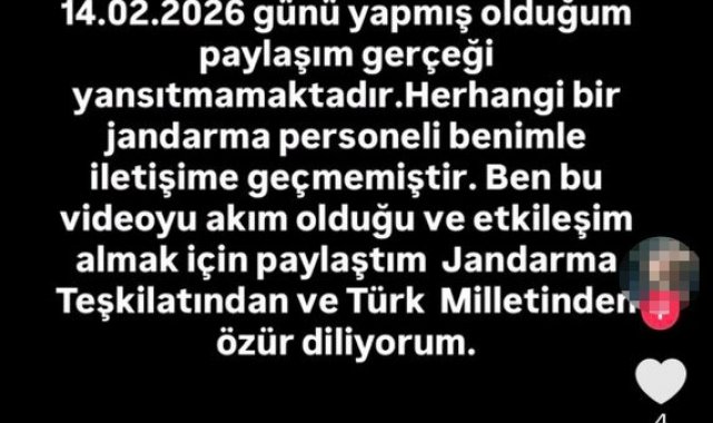Şüpheli S.A.'nın, sosyal medya hesabı üzerinden yaptığı paylaşımda söz konusu iddiaları "sosyal medyada akım olduğu için etkileşim ve takipçi kazanmak amacıyla" ortaya attığını itiraf ettiği öğrenildi. Paylaşımında tüm jandarma teşkilatından ve Türk milletinden özür dileyen S.A., yalan haberlerin bu kadar hızlı yayılacağını öngöremediğini ve bir daha benzer bir davranışta bulunmayacağını belirtti.