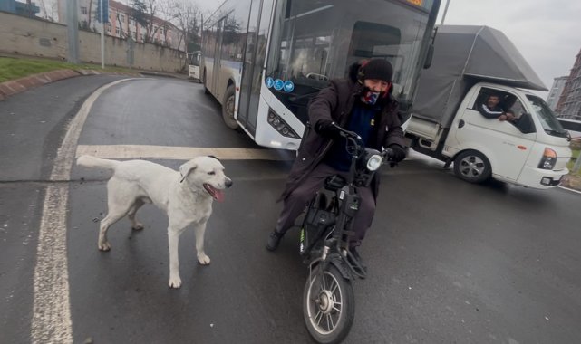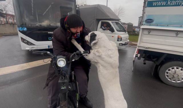 Tunca ile köpeği Karagöz arasında trafikte yaşanan sevgi dolu anlar ise vatandaşları da gülümsetti.